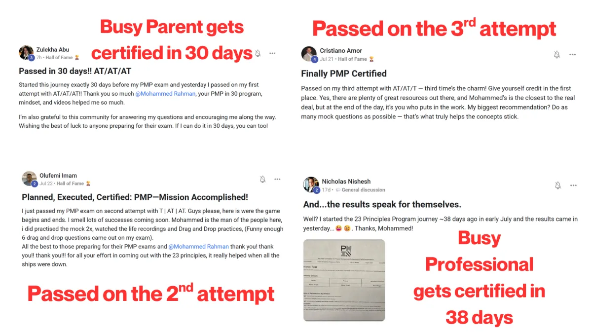 You failed the exam before and are not sure what you need to focus on next. You want to make sure you address your gaps but the PMI does not release their question results. You're confused and overwhelmed with everything and want to get this certificate ASAP.